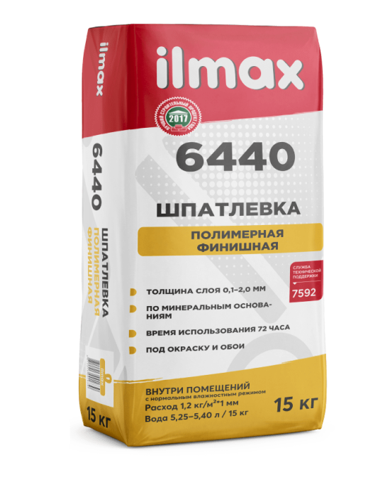 Шпатлевка ilmax 6440 предназначена для выравнивания шероховатостей, неровностей, заполнения царапин, трещин, выбоин и других дефектов для получения гладкой ровной поверхности стен и потолков под окраску и оклейку обоями. Можно наносить в несколько слоёв. Для ручного нанесения.